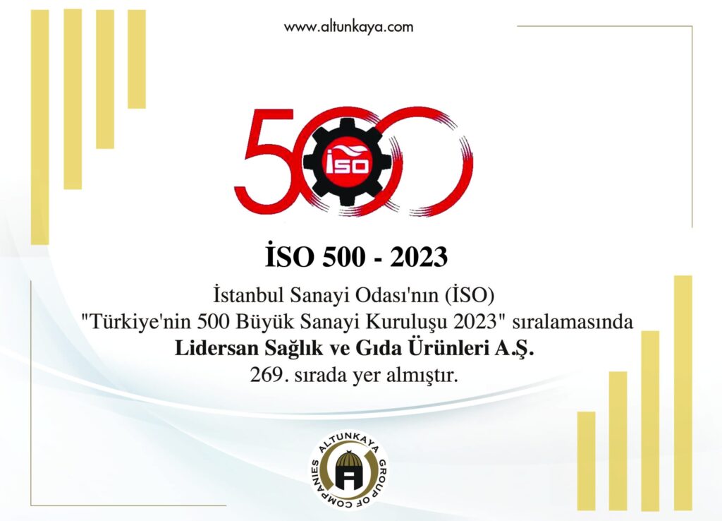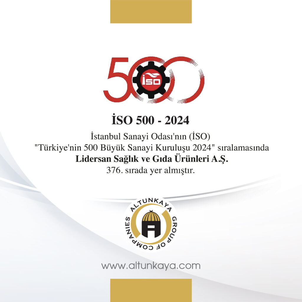 İstanbul Sanayi Odası (İSO) tarafından açıklanan “Türkiye’nin 500 Büyük Sanayi Kuruluşu 2024” sıralamasında, Lidersan Sağlık ve Gıda Ürünleri A.Ş. 376. sırada yer alarak sektöründeki gücünü ortaya koydu. Bu sonuç, Altunkaya Grubu bünyesindeki şirketlerin sanayi üretimindeki stratejik rolünü vurguluyor.